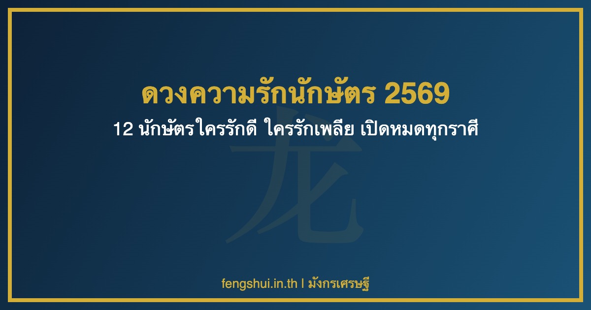 ดวงความรัก 2569 แต่ละนักษัตรเป็นยังไง? เจาะดวงความรักทั้ง 12 นักษัตรในปีมะเมีย ใครมีเรื่องหัวใจ ใครเจอคู่แท้ และวิธีเสริมดวงความรักด้วยฮวงจุ้ย24 มีนาคม 2569