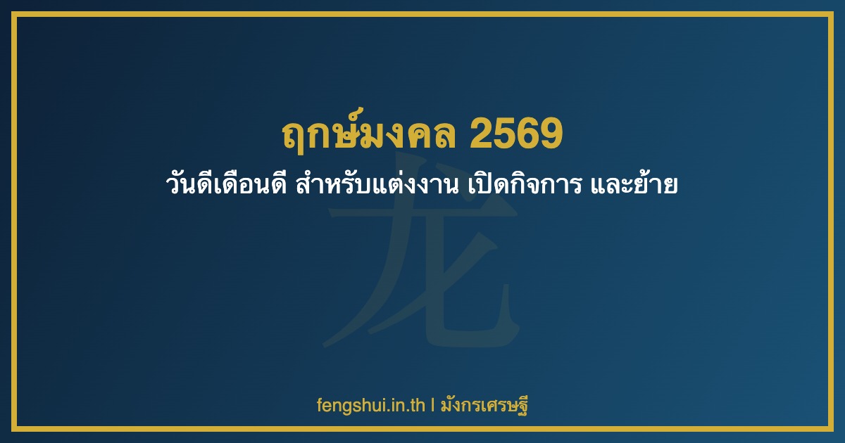 ฤกษ์มงคล 2569 วันไหนดีที่สุด? รวมฤกษ์แต่งงาน เปิดร้าน เปิดกิจการ ย้ายบ้าน ตามหลักโหราศาสตร์จีนและฮวงจุ้ย เลือกวันให้ถูก โชคดีตลอดปี24 มีนาคม 2569