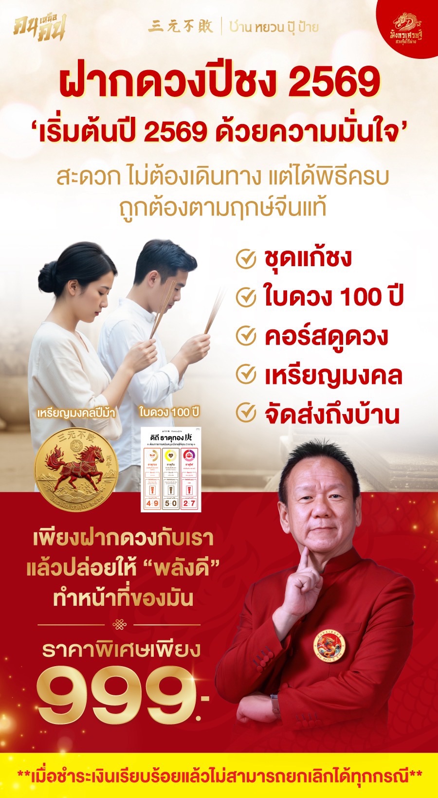 ช่วงที่เปิดรับฝากแก้ชง - เสริมดวง ตั้งแต่ ม.ต.-มี.ค. เท่านั้น