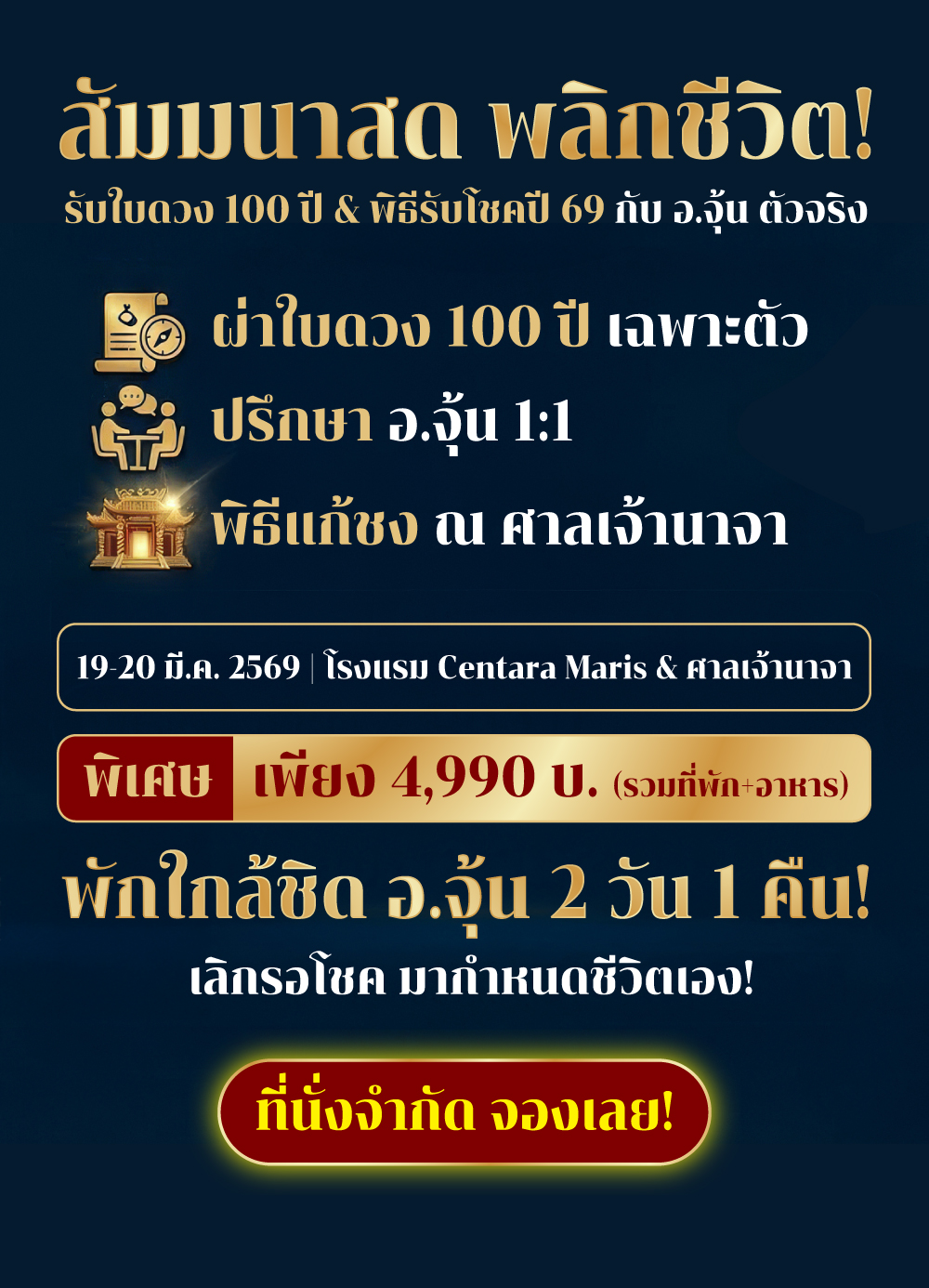 - อาจารย์จะเจาะลึกเฉพาะคุณ → เพื่อให้คุณ "ไม่พลาด" จุดเปลี่ยนของชีวิตในปีนี้